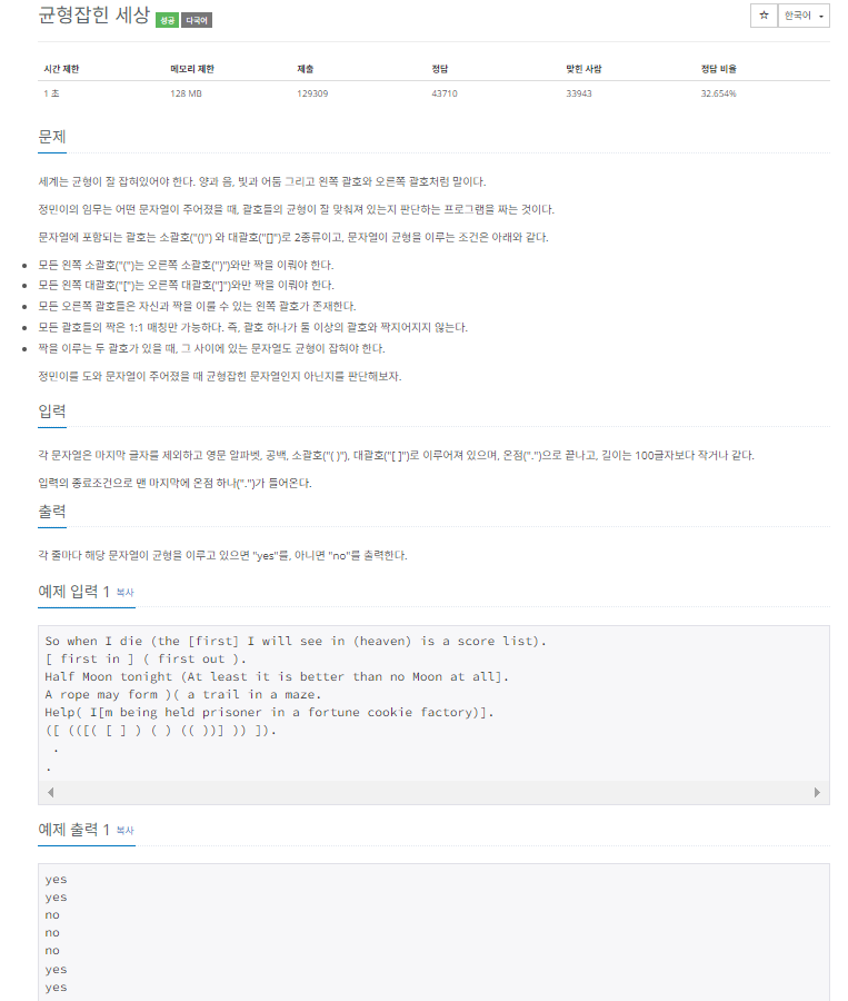 ✅문제: 4949번
