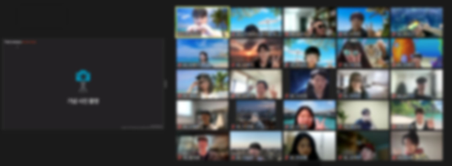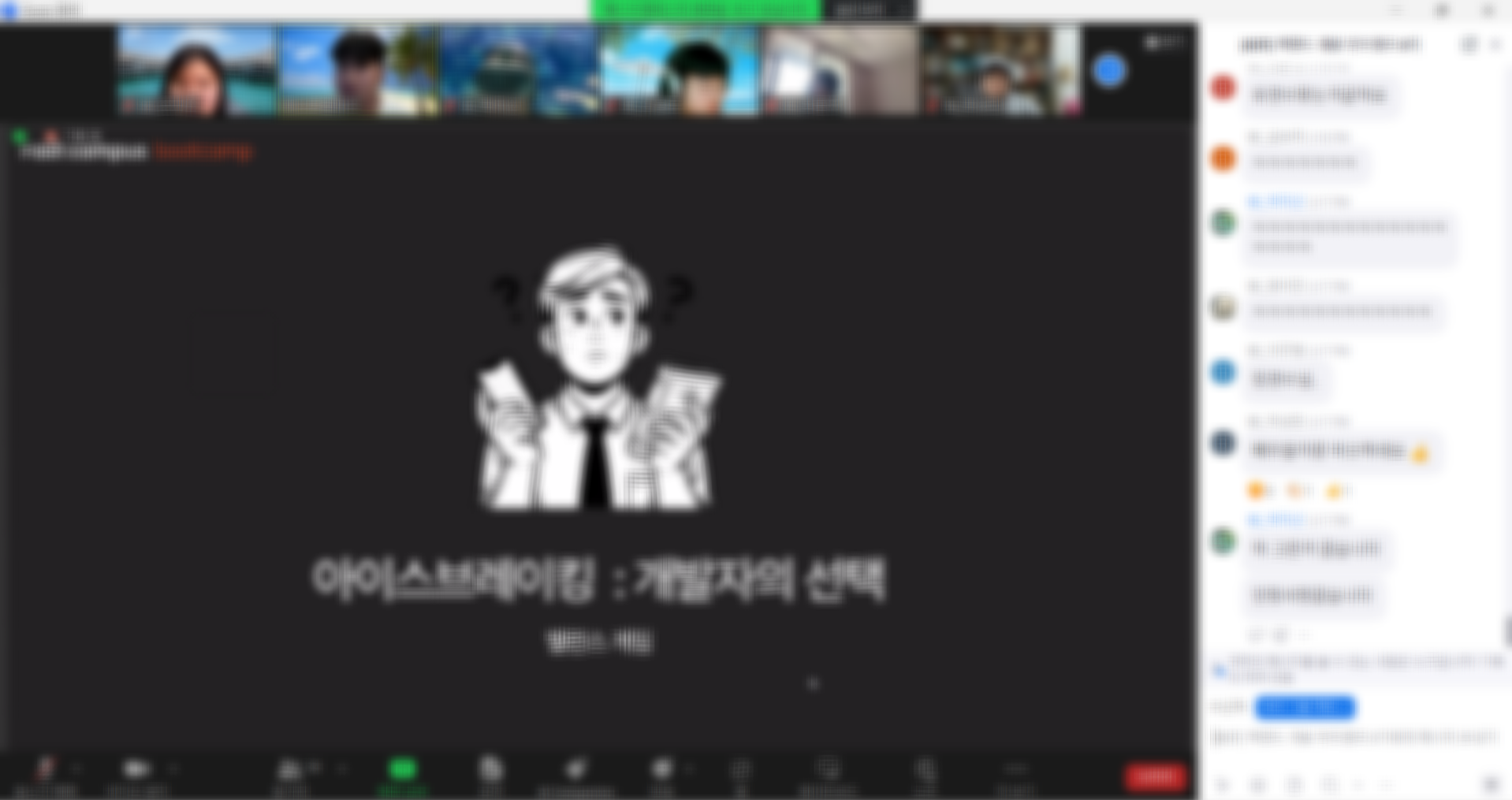 오늘의 바캉스 왕 선정 이벤트! 다들 Zoom의 이모티콘과 배경을 적절히 사용하셔서 당장이라도 휴가를 떠날 것 같은 모습으로 등장하셨습니다. 그 중에서도 스노쿨링을 즐기다가 막 회의에 참석하신 것 같은 모습이었던 리더님이 바캉스 왕으로 선정되셨습니다!