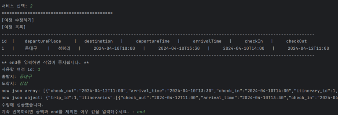 특정 ID를 가진 여행 정보를 찾아 사용자가 원하는 대로 데이터를 수정할 수 있음.