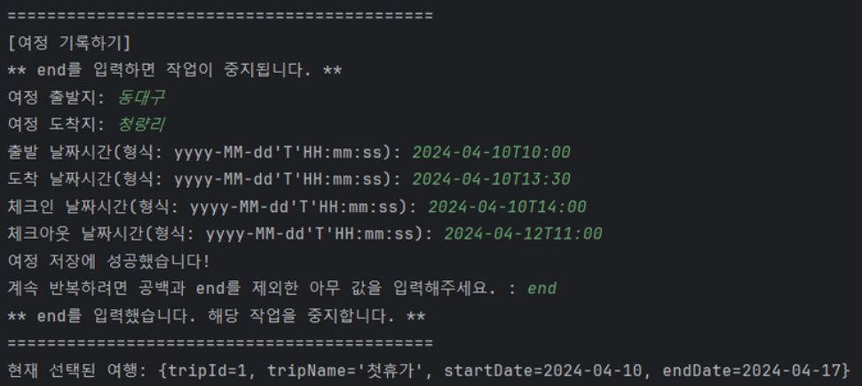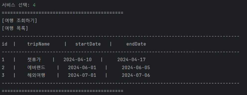 "여행의 여정 정보를 기록하고 조회하는 Java 애플리케이션"
