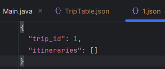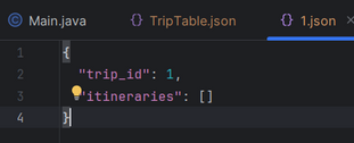 [여행 기록하기]를 실행하고 생성된 해당 tripId.json 파일을 보면 itineraries라는 키가 존재함.