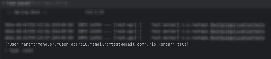코드를 실행하면 사진과 같이 UserRequest가 담고 있는 내용이 JSON으로 바뀐것을 확인할 수 있음.