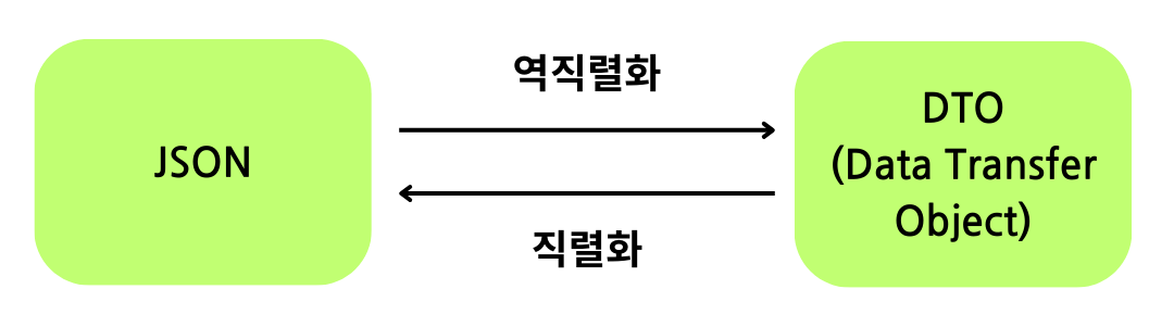 Spring Boot는 기본적으로 ObjectMapper가 동작함. POST나 RequestBody에 있는 JSON 형태의 데이터들을 자바 객체(DTO)로 맵핑하는 역할(역직렬화)을 함. 반대로, 자바 객체를 JSON으로 변환하는 직렬화 과정도 ObjectMapper에 의해 자동으로 처리됨.