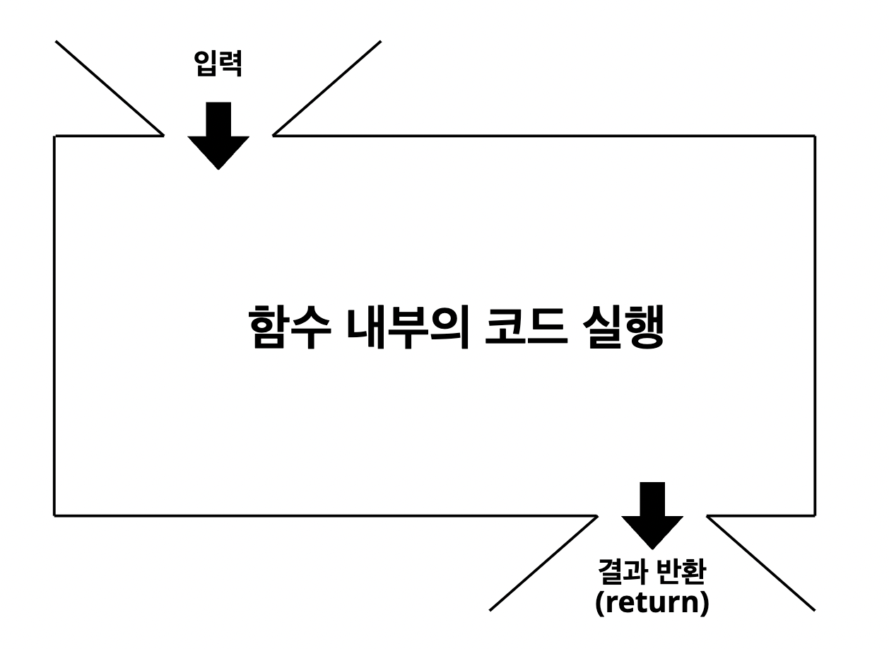 조금 더 자세히 이야기하자면, 함수는 입력(input)을 받아 출력(output)을 하는 하나의 작은 기능 단위. 즉, 입력을 받아서 코드블록 내부의 코드를 실행한 후 함수의 실행결과를 반환하는 일련의 과정의 묶음임.