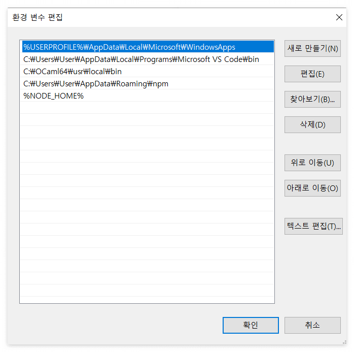 설치를 완료했으면 이제 Node.js 경로를 환경 변수에 설정함.