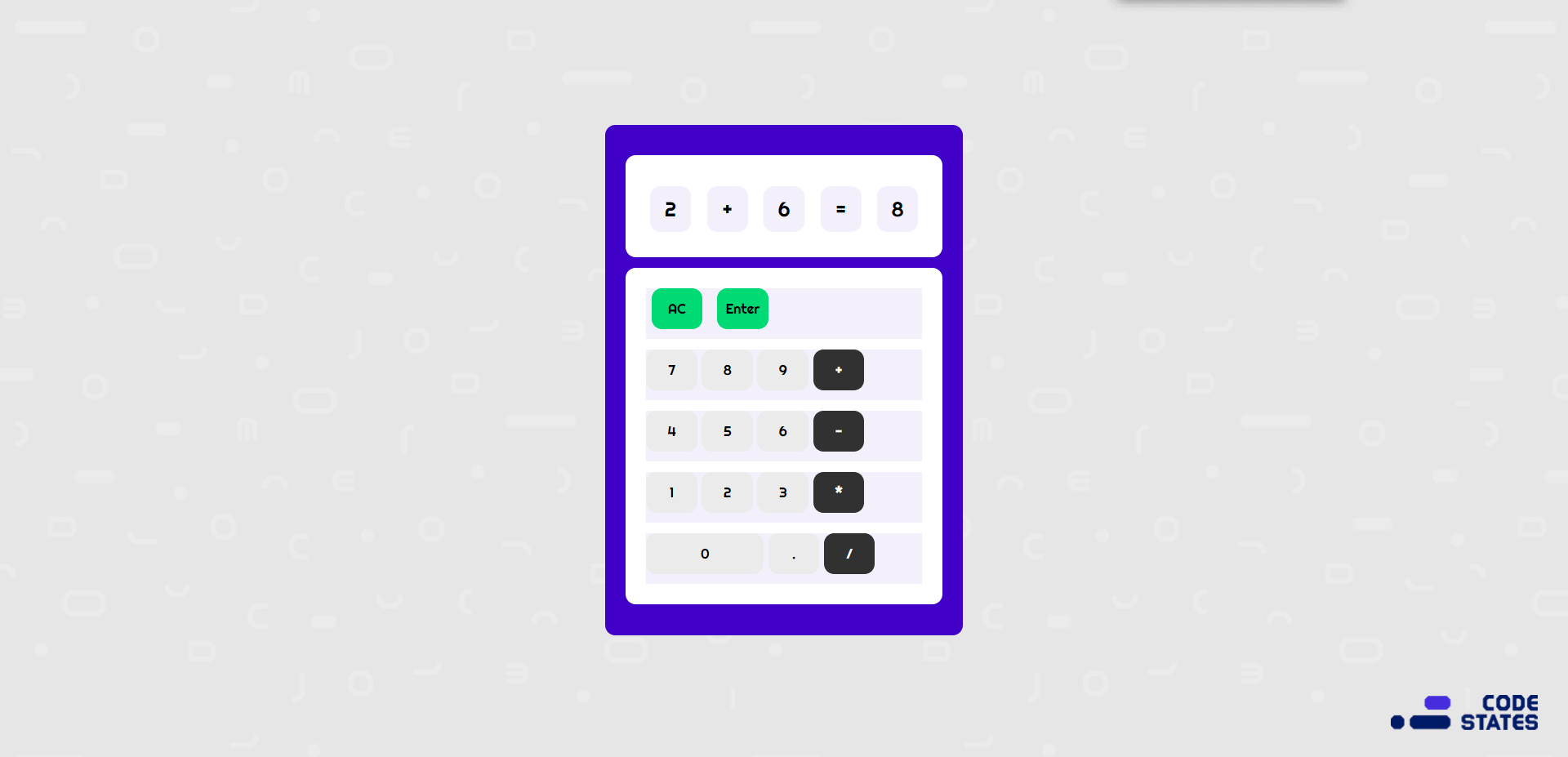 - 두 숫자의 사칙연산을 할 수 있는 계산기를 구현함.