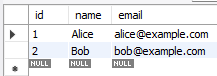 INSERT INTO customers_innodb (name, email) VALUES ('Bob', 'bob@example.com');