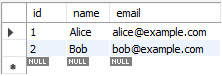 INSERT INTO customers_myisam (name, email) VALUES ('Bob', 'bob@example.com');