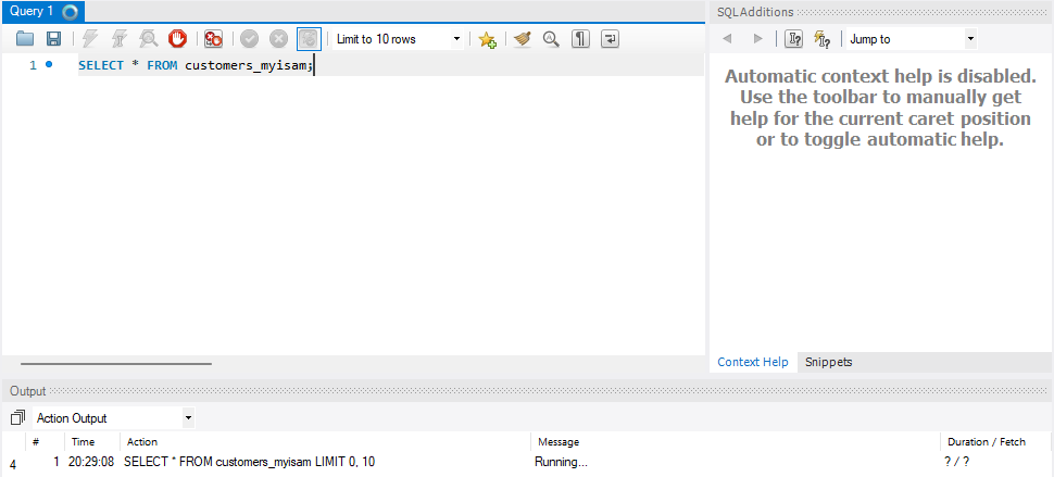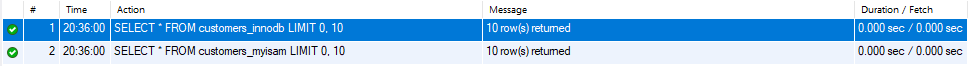 -- MyISAM 테이블에서 SELECT 쿼리 실행