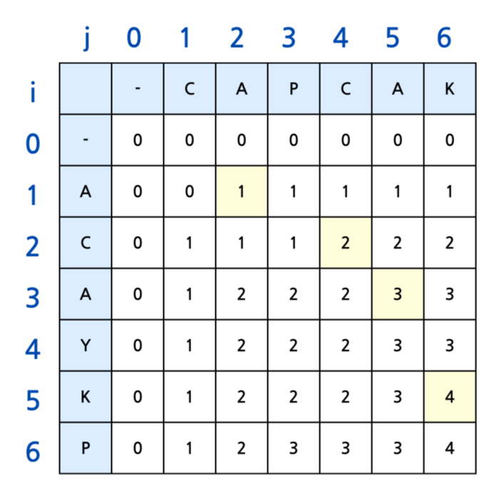 1) emplam27, "[알고리즘] 그림으로 알아보는 LCS 알고리즘 - Longest Common Substring와 Longest Common Subsequence", 2021.01.02, https://velog.io/@emplam27/알고리즘-그림으로-알아보는-LCS-알고리즘-Longest-Common-Substring와-Longest-Common-Subsequence#최장-공통-문자열longest-common-substring