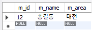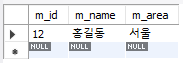 INSERT INTO member (m_id, m_name, m_area) VALUES (12, '홍길동', '서울');