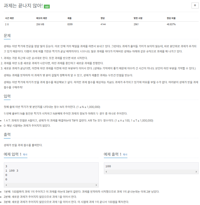 [백준] 17952번: 과제는 끝나지 않아! (파이썬) 본문