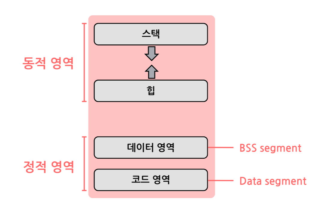 - 정적 할당: 컴파일 단계에서 메모리를 할당하는 것