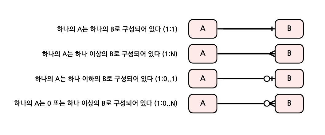 - ERD(Entity Relationship Diagram): 릴레이션 간의 관계들을 정의한 것