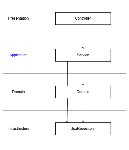 - 도메인 없는 비즈니스 레이어는 비즈니스 레이어라고 부를수 없음. 그래서 비즈니스 레이어의 이름을 애플리케이션(Application, 응용) 레이어라는 이름으로 변경함.