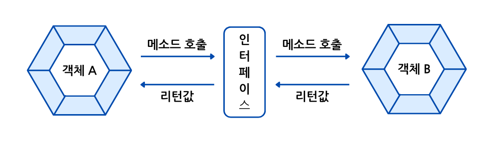 - 인터페이스는 두 객체를 연결하는 역할을 함.