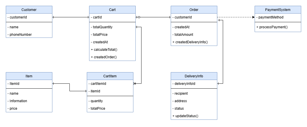 이번 활동을 통해 책임-주도 설계(RDD)에 대한 단순한 이론이 아니라, 실제 도메인 모델이 어떻게 연결되는지 체감할 수 있었다. 아직 익숙하지는 않지만, 직접 그려보는 과정에서 객체의 책임과 협력의 구성에 대한 관점이 확실히 달라진 것 같다.
