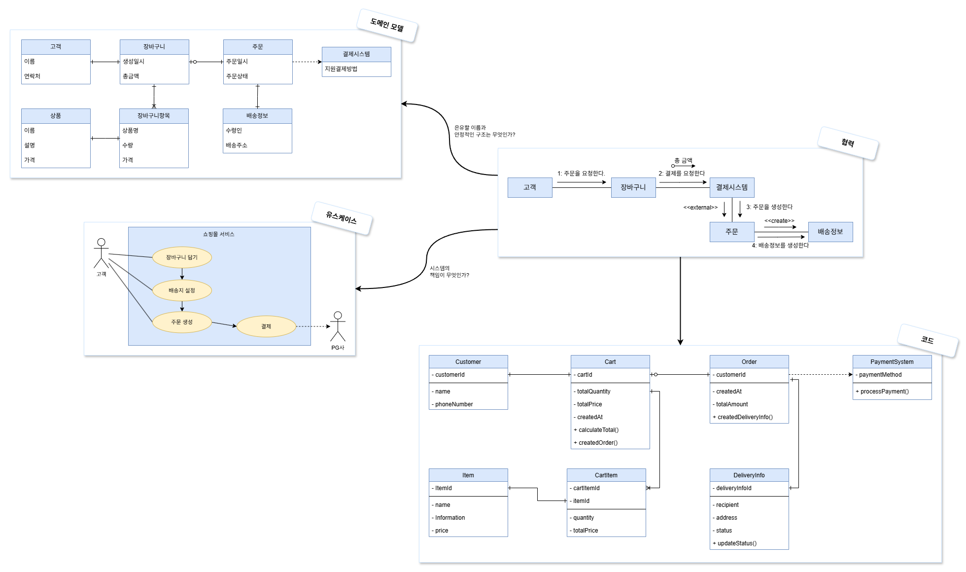 이번에는 책 198쪽에 있는 쇼핑몰 서비스에 대해서 도메인 모델 및 유스케이스에 대해 책임-주도 설계를 진행했다. 각자 같은 주제에 대해서 그려보고, 스터디원끼리 피드백을 하기로 했다.