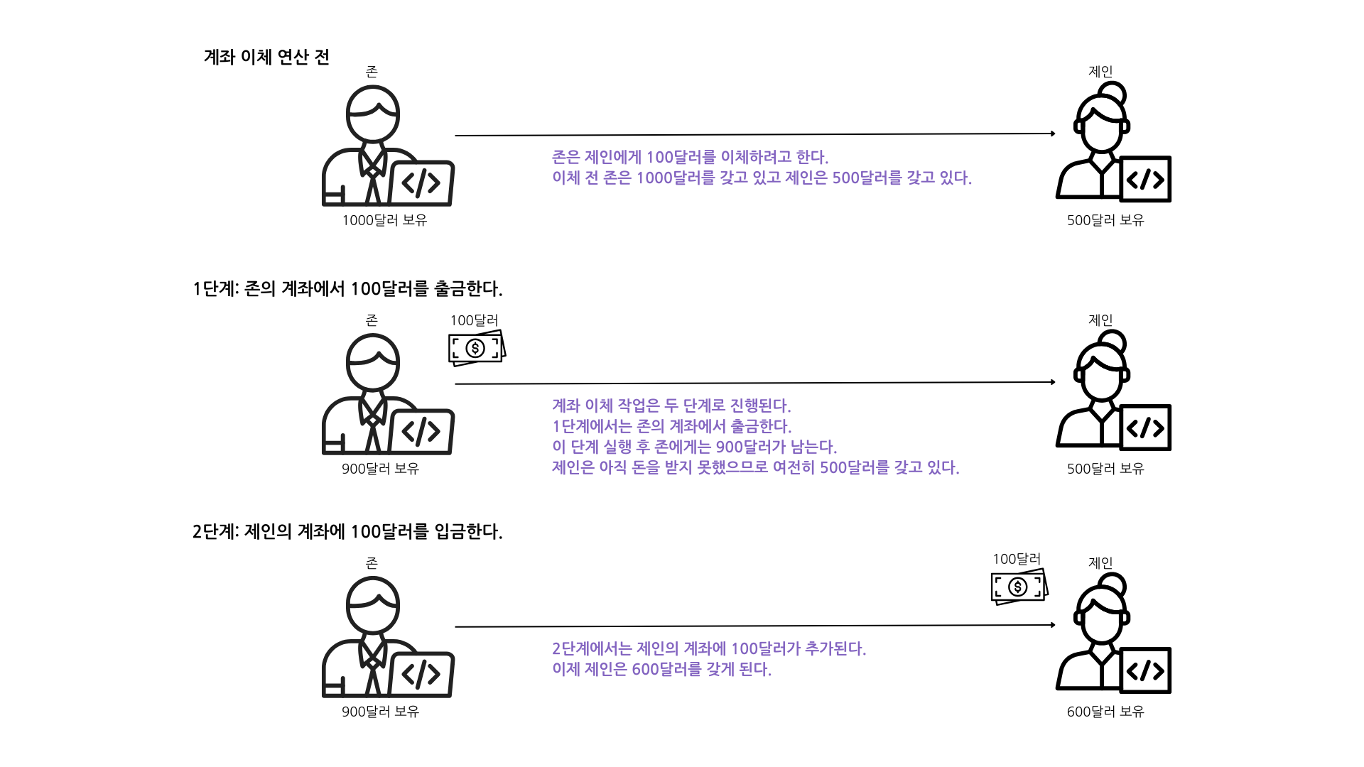 - 수취인 계좌에 해당 금액을 입금한다.