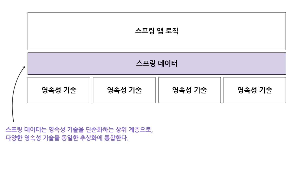 - 다양한 영속성 기술에 대한 공통적인 추상화(인터페이스) 집합을 제공한다. 서로 다른 기술에 대한 영속성을 구현할 때 유사한 방식을 취할 수 있다.