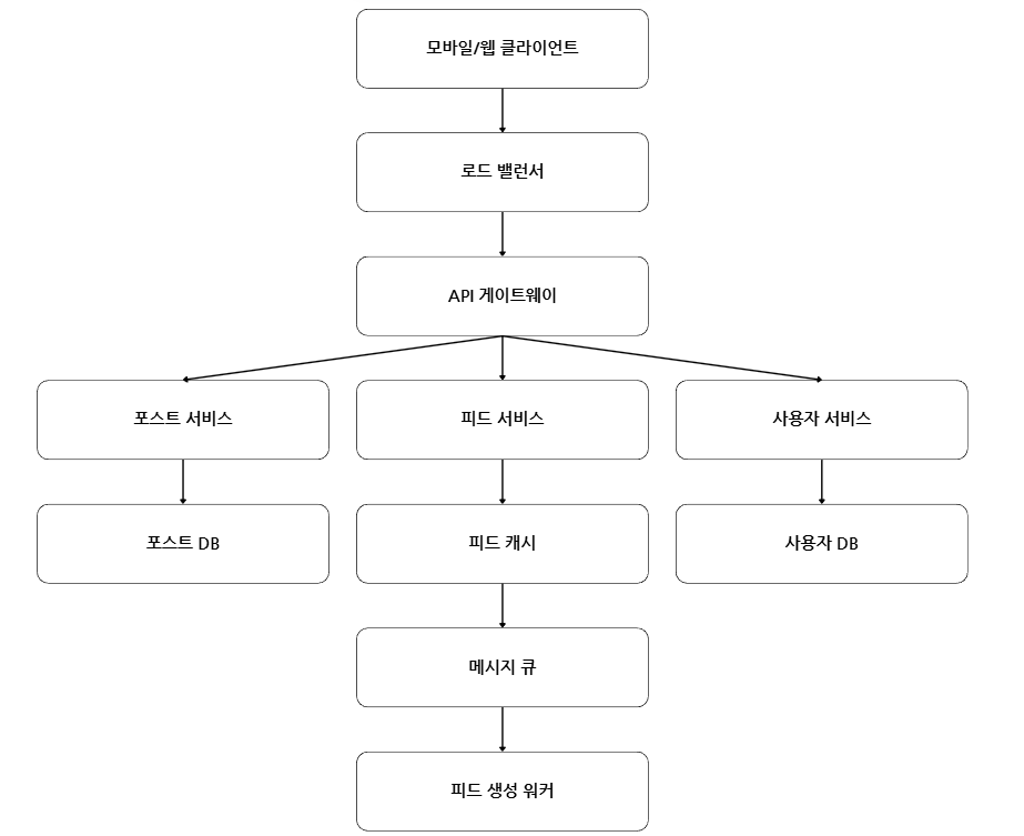 +) 비동기 처리 → 메시지 큐, 피드 생성 워커