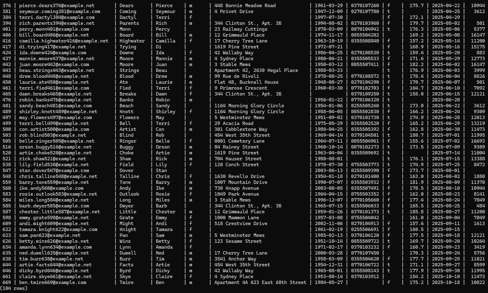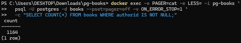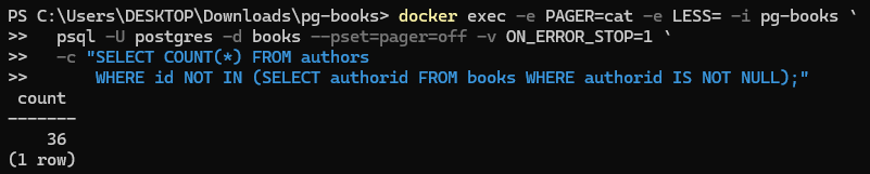 docker exec -it pg-books psql -U postgres -d books -c "SELECT COUNT(*) FROM customers;"