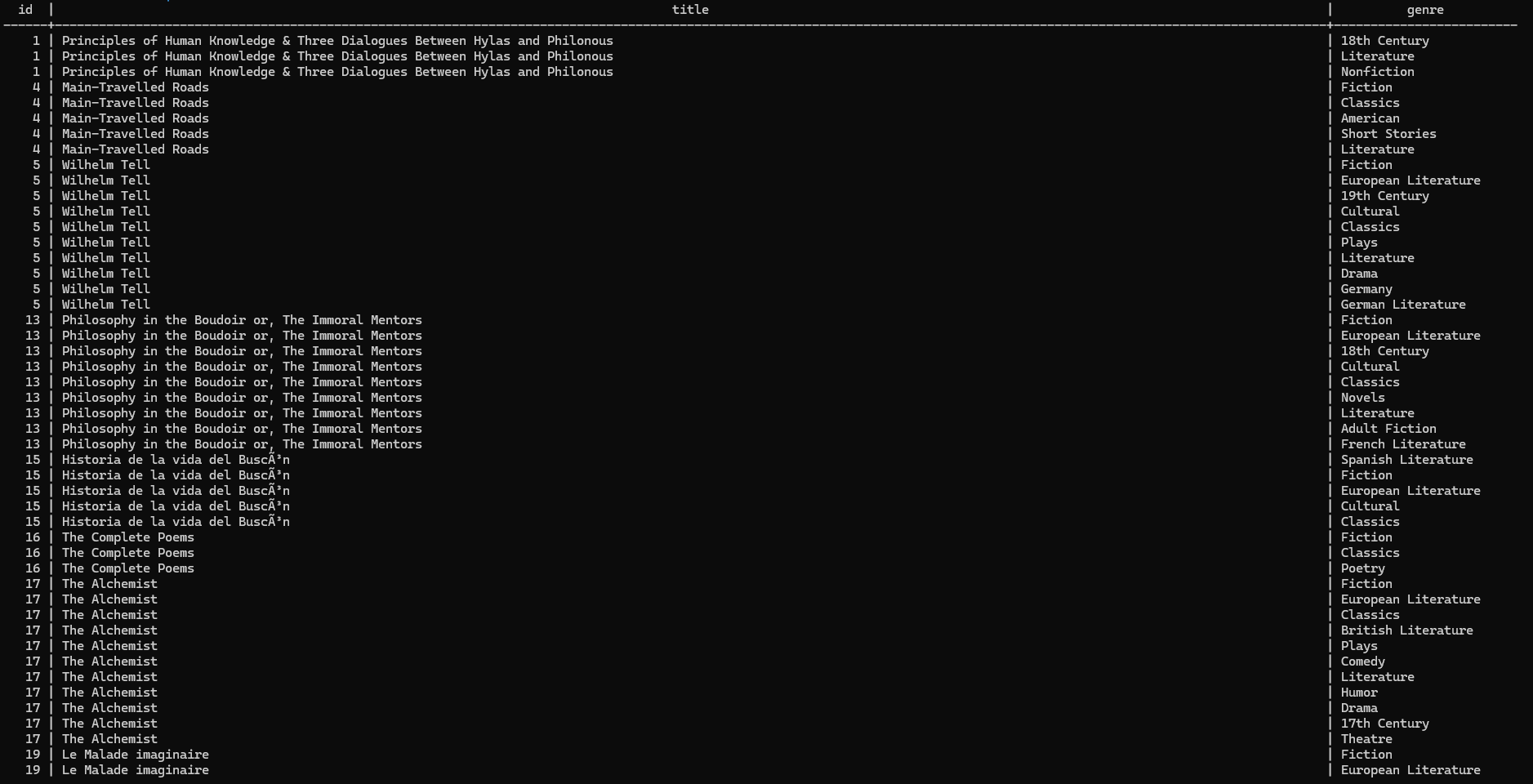 LEFT JOIN bookgenres bg ON b.id = bg.bookid
