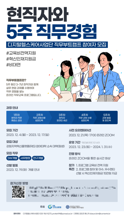 강원지역플랫폼 소속 대학생으로서 신청한 [디지털헬스케어사업단x코멘토] 경영사무행정 부트캠프 후기입니다.