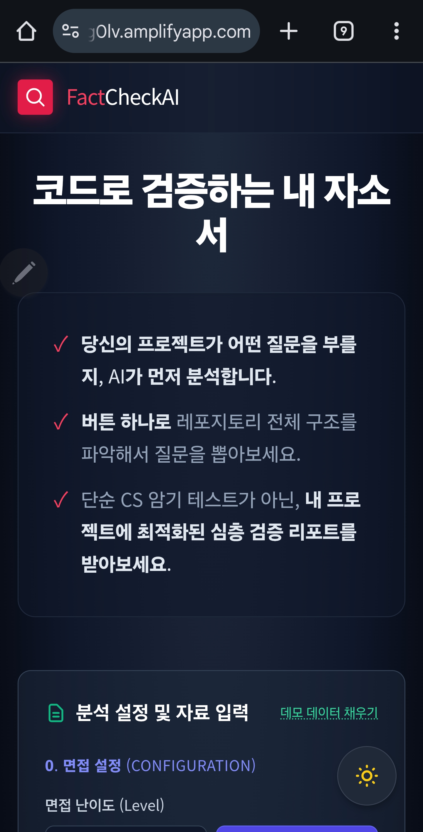 실제 배포된 최종 버전은 초기 버전과 구조가 크게 달라졌습니다. 반응형 UI로 구현하여 PC와 모바일에서 사용이 가능하며, 데모 데이터를 넣어 플로우를 확인할 수 있습니다.