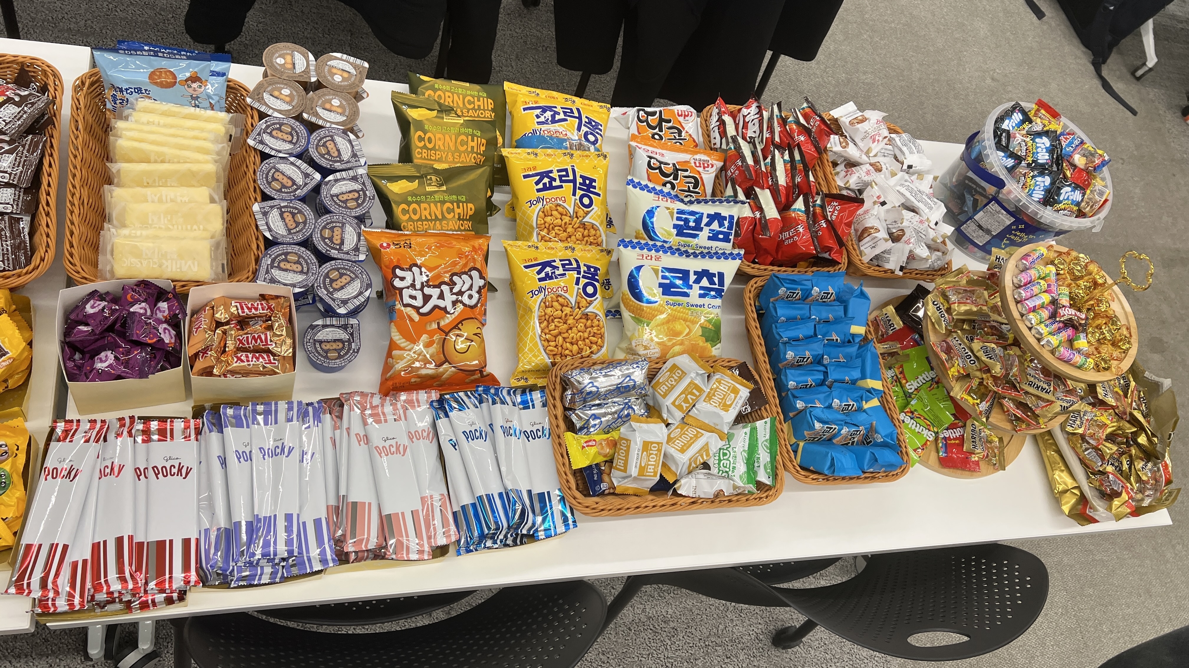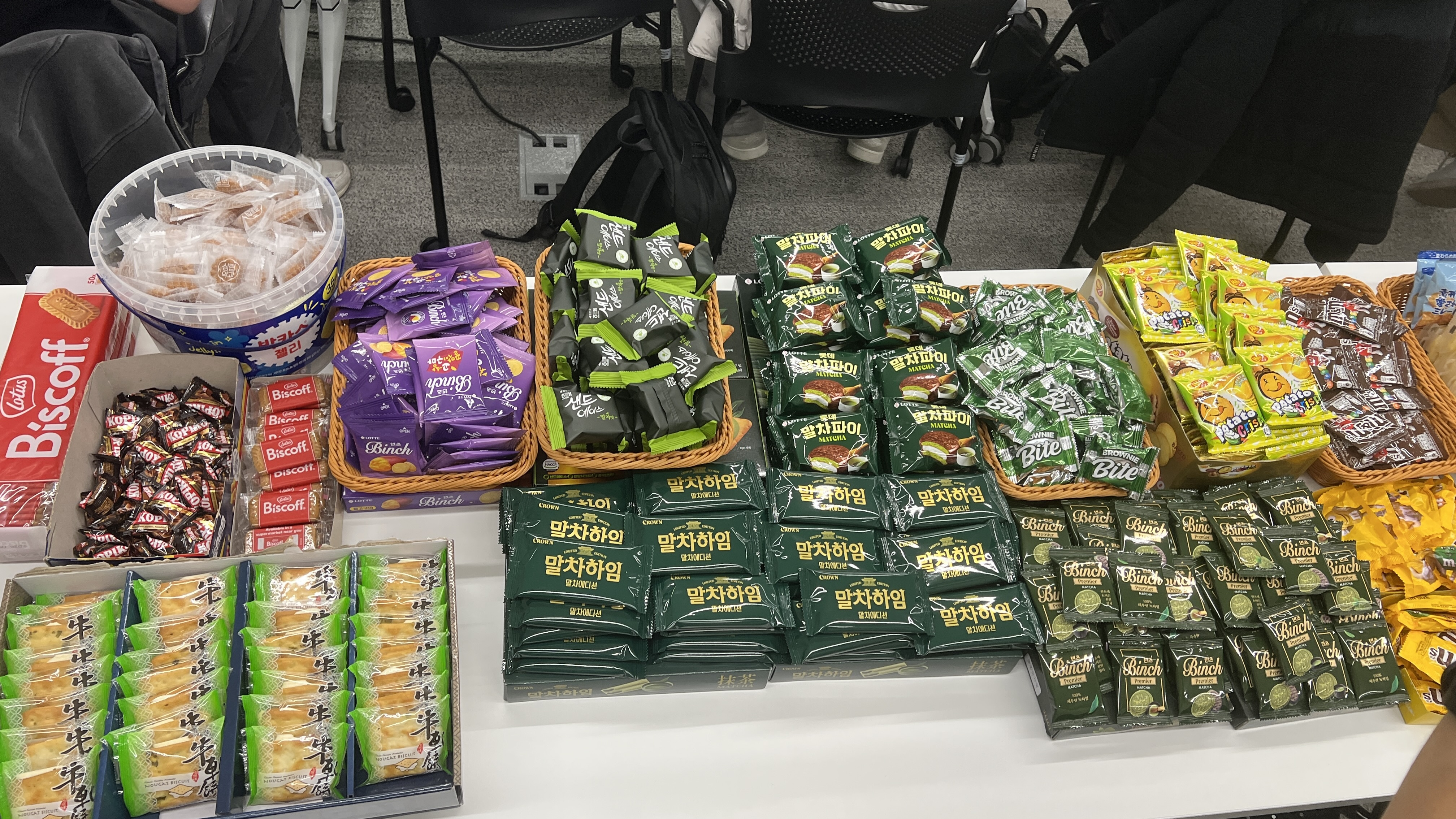 AWS에서 제공해주신 서브웨이 & 치킨 & 피자 & 김밥 덕분에 해커톤 내내 배가 고프지 않았습니다. 석식으로 먹은 서브웨이부터 준비해주신 각종 간식 덕분에 너무 잘 먹었습니다. 며칠 전에 말차 초코송이를 먹은 후 말차 과자를 사먹고 싶었는데, 마침 종류별로 준비해주셔서 좋았습니다!