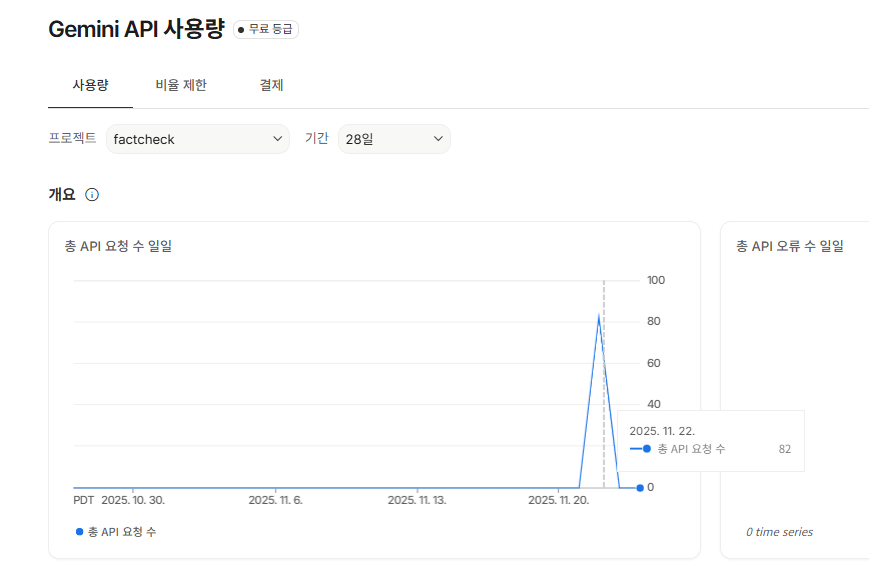 AI는 Gemini API 키를 발급받아서 사용했습니다. 토큰 제한과 AI 컨텍스트 윈도우 한계를 극복하기 위해 확장자와 파일명을 기준으로 중요도 점수(Scoring)를 매겨 상위 파일만 분석하도록 최적화했습니다. 팀원들과 테스트를 꽤 많이 진행했다고 느꼈지만, 실제 API 요청 수는 82회라서 비용 걱정은 없었습니다.