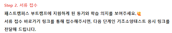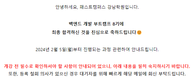 추가적으로, 기초소양테스트와 함께 프리코스 안내 내용도 같이 포함되어 있는데 일찍 신청하신 분들은 혜택을 누릴 수 있을 것 같습니다. 저는 늦게 신청해서 프리코스에 대해서는 잘 모르겠어요.