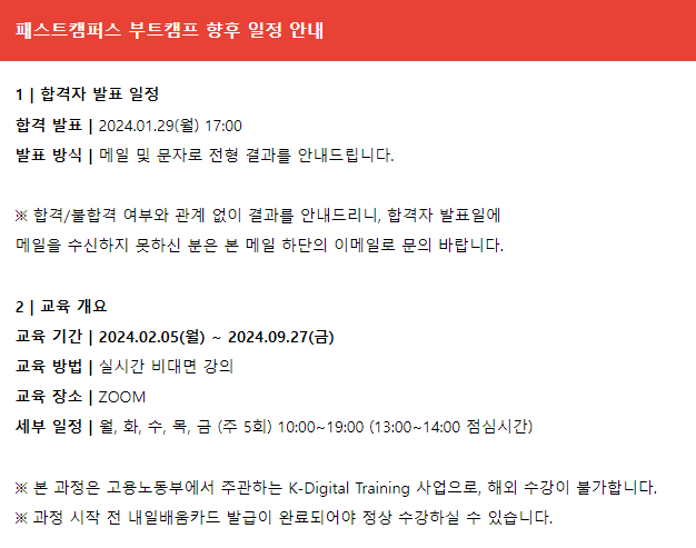 - 문의 결과, 패스트캠퍼스 회원가입을 할 필요 없이 다른 형태로 강의를 진행함(HRD-Net을 사용하는 것 같음)