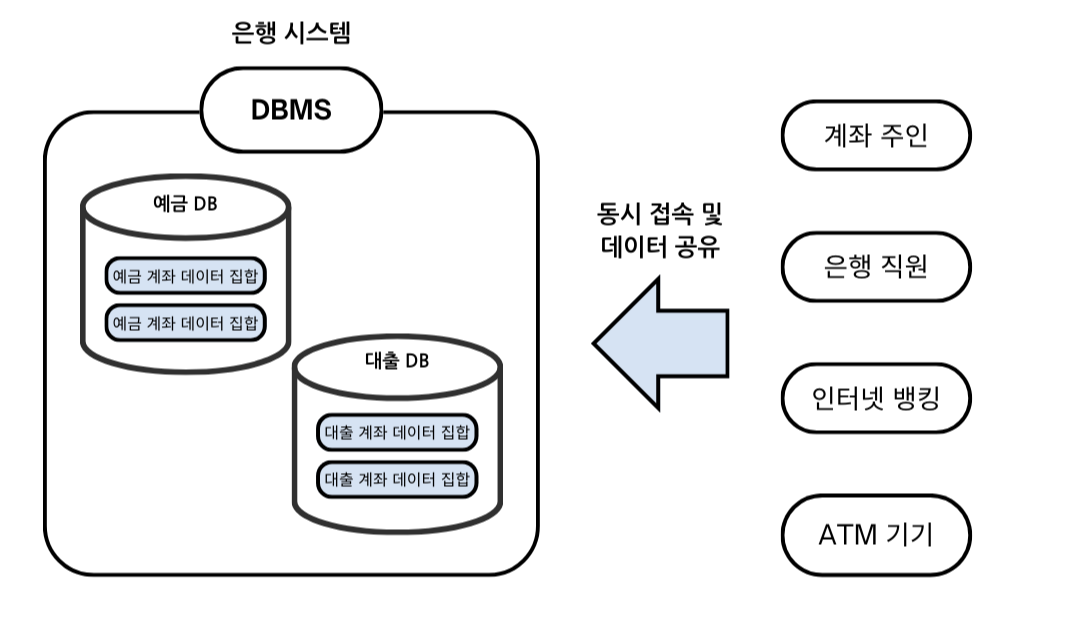 DBMS의 예시로 은행 시스템을 들 수 있음. 은행 데이터베이스에는 고객 계좌 정보, 거래 내역, 대출 정보 등이 저장되어 있음. DBMS는 이 데이터에 대한 안전한 접근을 제공하며, 여러 사용자가 동시에 거래를 하더라도 데이터의 일관성과 무결성을 보장함. 예를 들어, 두 고객이 동시에 같은 계좌로부터 금액을 인출하려 할 때, DBMS는 이러한 트랜잭션을 적절히 관리하여 계좌 잔액이 음수가 되지 않도록 함.
